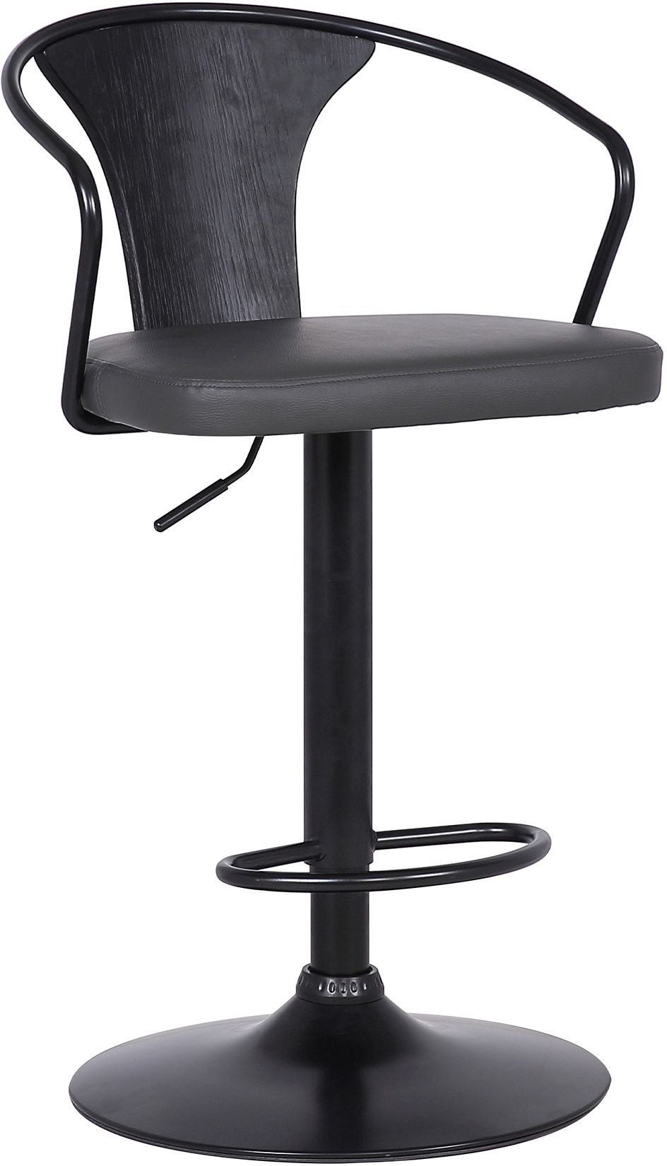 The Armen Living Eagle contemporary adjustable barstool is a medium back stool that features an attractive, yet adaptable aesthetic frame design. A wonderful choice for both the kitchen and the home bar setting, the Eagle comes with a 360 degree swivel seat and adjustable height mechanism, allowing you to transform the stool from a 26 inch counter to a 30 inch bar height with ease. The Eagle's Black Powder Coated finish steel frame assures an unmatched degree of durability while complimenting the unique Black Brushed Wood reinforced seat design. Padded with foam, the Eagle's Faux Leather upholstered seat offers exceptional support that is further enhanced by the stool's added footrest. The Eagle's sleek column frame is beautiful and in keeping with contemporary design sentiments. An excellent choice for any modern home, the Eagle is sold with your choice of a Black or Grey Faux Leather upholstered seat.