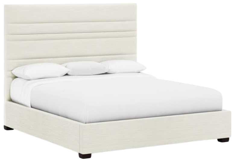 The Murray panel bed has a distinctive headboard that showcases horizontal channels in varying widths. The design offers both style and comfort, which also extends to the fully upholstered frame. Exposed wood feet in smoke or espresso finishes.Read More