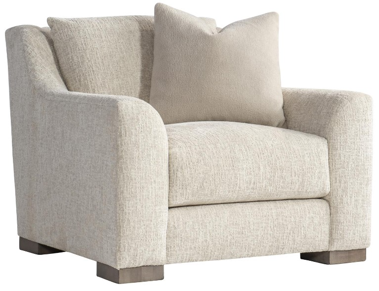 The Gabi fabric chair offers an alluring comfort destination with sweeping lush curves. The oversized arms frame a deep seat and a knife-edge back pillow, along with one (1) curated throw pillow. Exposed wood block feet in Portobello finish support the bold design.Read More