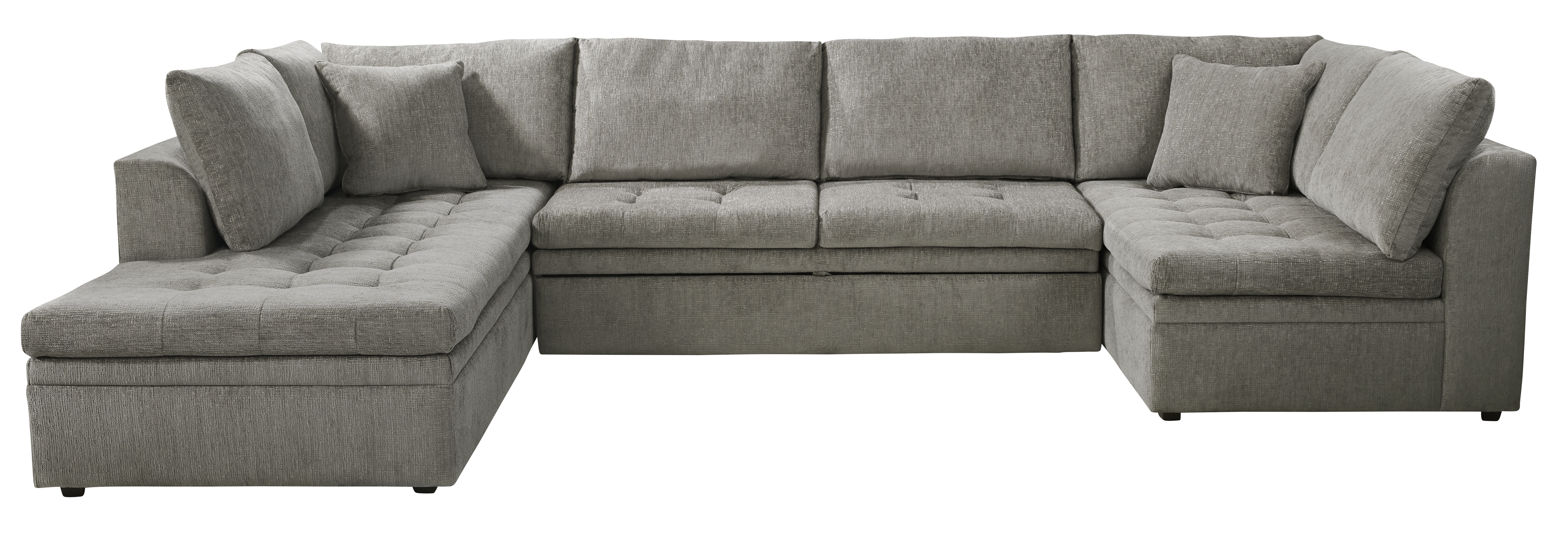 3pc Cosmo Chaise Sectional features Pop up trundle in the armless loveseat. Correlating accent pillos also includedRead More