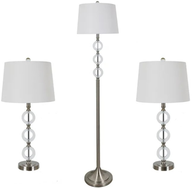 Set includes one floor lamp and two table lamps
