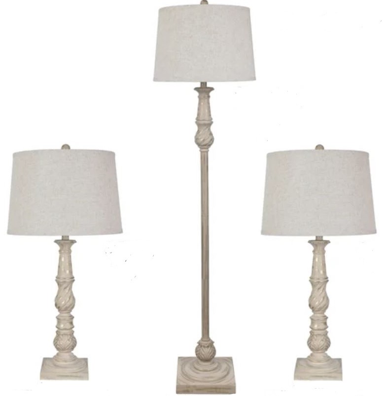 Add the combination of style and function with this eye-catching lamp set from the Crestview Collection. Shown in beige finish. Make a bold statement by incorporating this stunning lamp set into your home.Read More