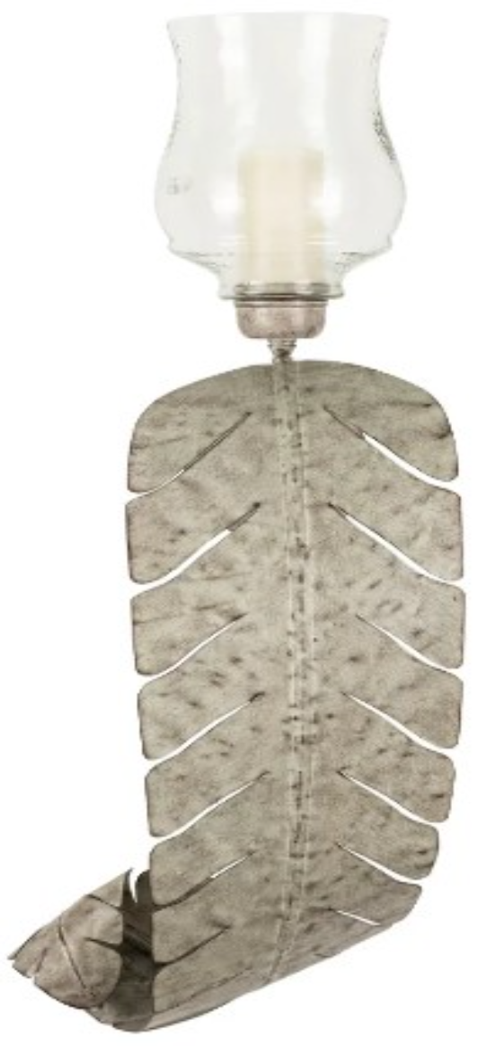 The Crestview Collection Large Palmetto Palm Leaf Wall Sconce brings a coastal style feel to your home. Made of metal, this candle sconce features a curved feather design supporting a small, transparent glass cup which houses the candle; the feather features an aged silver finish.Read More