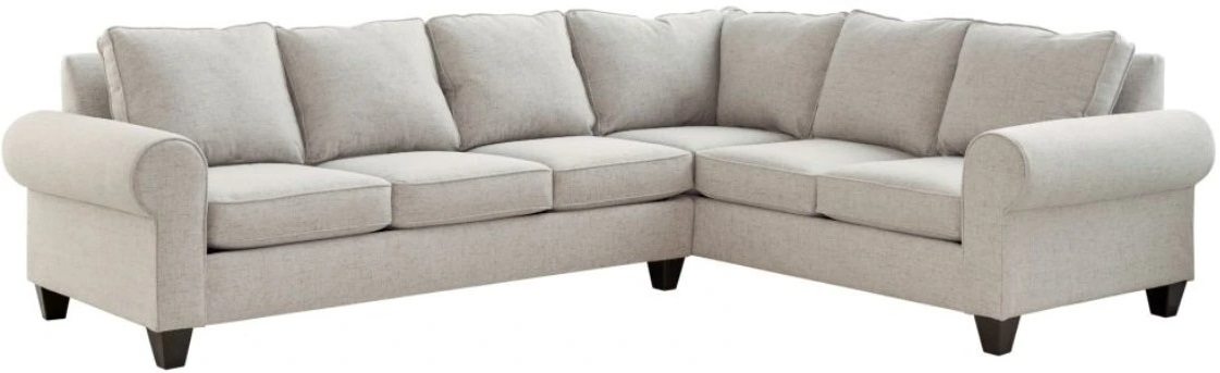 This sectional sofa will provide your home with a beautiful spot to gather perfect for family movie night, snooze time, and everything in between. Complimented by rolled arms and dark wooden feet, this sectional provides comfort and neutral upholstery that will effortlessly blend into your living space.Read More