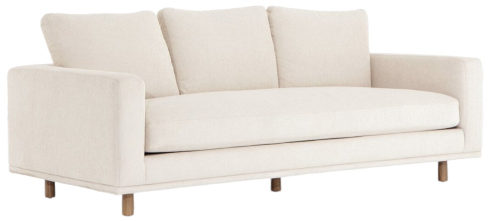 The performance-grade fabric brings surprising livability to a show-stopping silhouette. Pristinely tailored ivory upholstery exudes elegance, with clean track arms and loose feather-blend cushioning for total comfort. Cushions are not reversible.Read More