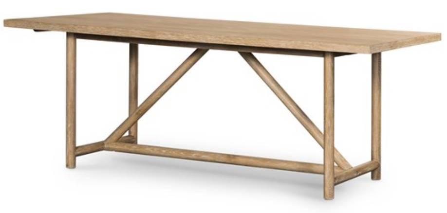 Rustic goes modern. A triangular stretcher brings architectural interest to this simply styled dining table of white-washed oak. Elevate the look of your room by incorporating this table from Four Hands.Read More