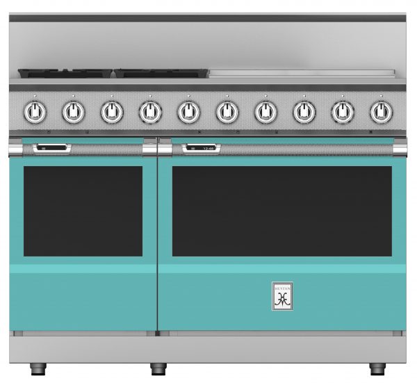 The Hestan 48” range provides searing culinary power with a sealed burner system delivering exceptional temperature control for culinary power up to 23,000 BTUs and as low as 500 BTUs. The 24” commercial-grade stainless steel gas griddle makes breakfast a cinch with superior heating and a thermostat for precise temperature control. The high-performance oven features exclusive PureVection™ technology, which electronically controls multiple heating convection systems, to optimize baking, broiling, roasting and convection baking. And, the MarquiseDisplay™ gives you a chef-friendly digital display – conveniently inset right in the oven handle.Read More