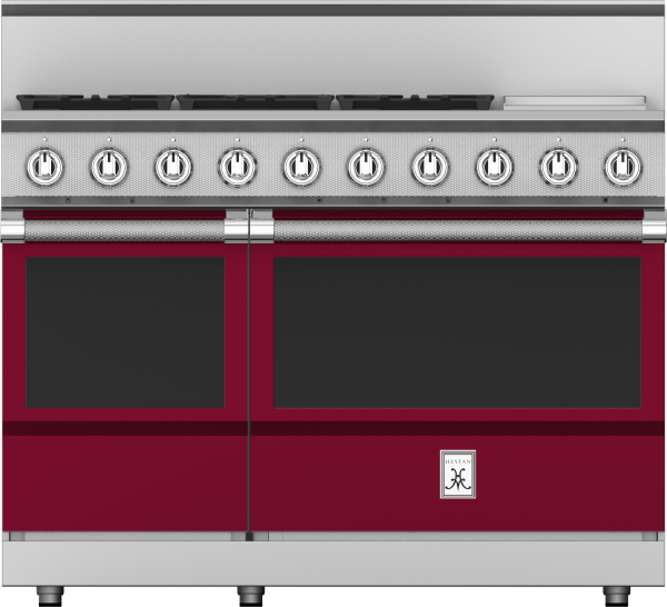 The 48” all gas range offers the most powerful gas burner available to the home – the patented CircuFlame™ burner – the same powerful burner featured on the award-winning Hestan Commercial restaurant equipment. On the other end of the spectrum, the simmer flame setting on the surrounding burners ensures a gentle, non-flickering flame of 500 BTUs for your most delicate sauces. The high-performance oven features exclusive PureVection™ technology, which electronically controls multiple heating convection systems, to optimize baking, broiling, roasting and convection baking.Read More