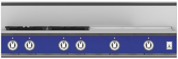 The 48” Hestan rangetop with griddle delivers searing culinary power with a sealed burner system delivering exceptional temperature control for culinary power up to 23,000 BTUs and as low as 500 BTUs. The 24” commercial-grade stainless steel gas griddle makes breakfast a cinch with superior heating and a thermostat for precise temperature control, while the continuous grates and backlit knobs combine stunning form and function.Read More
