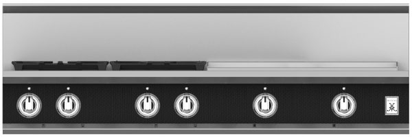 The 48” Hestan rangetop with griddle delivers searing culinary power with a sealed burner system delivering exceptional temperature control for culinary power up to 23,000 BTUs and as low as 500 BTUs. The 24” commercial-grade stainless steel gas griddle makes breakfast a cinch with superior heating and a thermostat for precise temperature control, while the continuous grates and backlit knobs combine stunning form and function.Read More