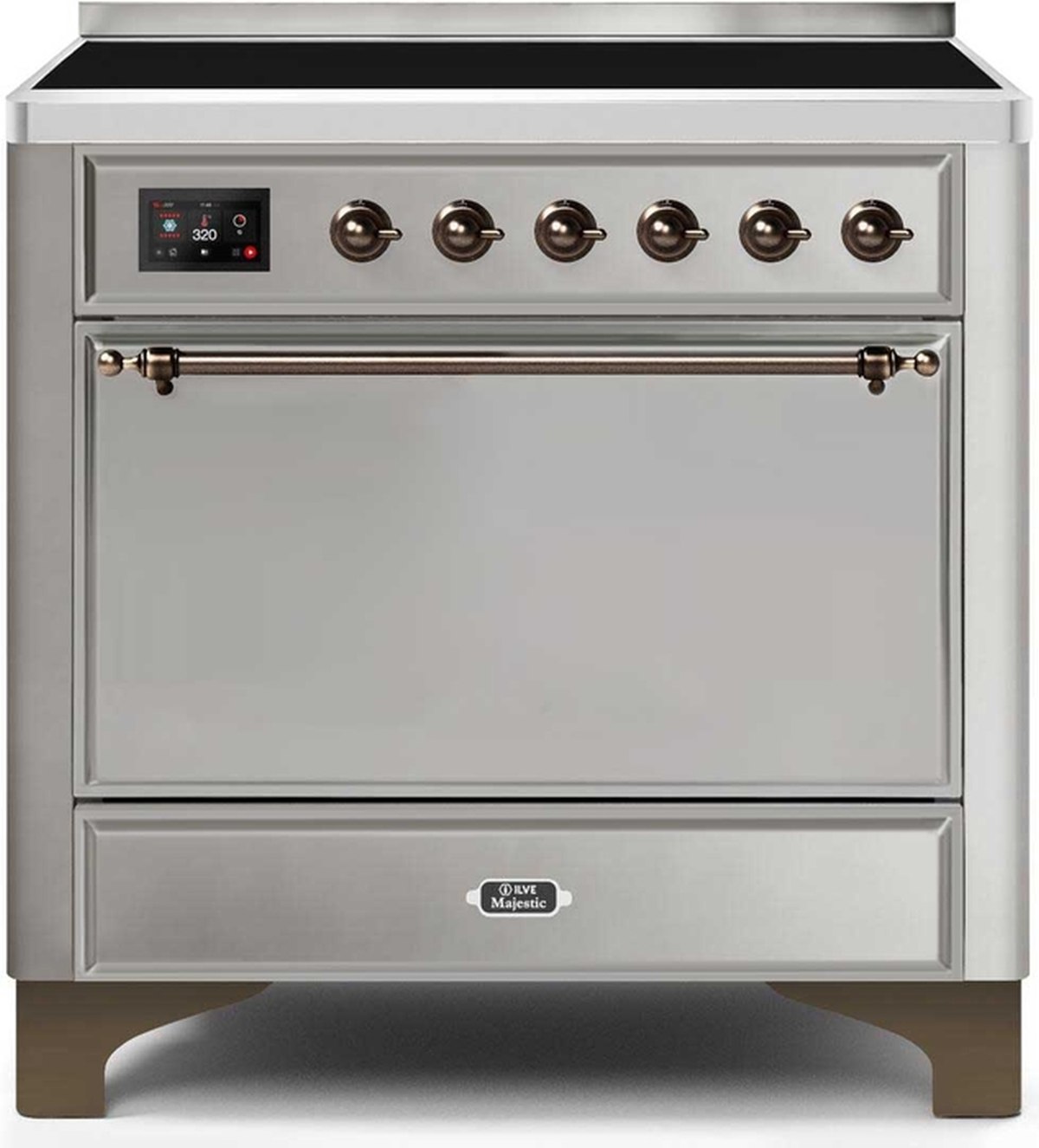 The 36" Majestic Series Induction Range by Ilve comes with 5 elements and a 3.5 cu. ft. capacity oven that will bring you the ultimate cooking experience to your kitchen. The large European Convection oven gives you the power to experiment with your dishes and get even cooking, while the full-width dishwarming drawer gives the option to use residual heat of the oven to keep cooked food warm or warm your dishes before serving.