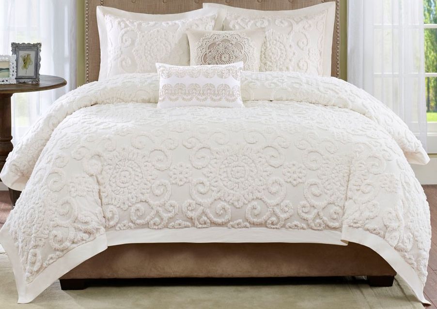 For a classic cozy look, the Harbor House Suzanna Bedding Collection is the perfect fit. The comforter features a medallion and scroll pattern created with tufted embroidery. The tufted technique creates texture and dimension for added value to the design.