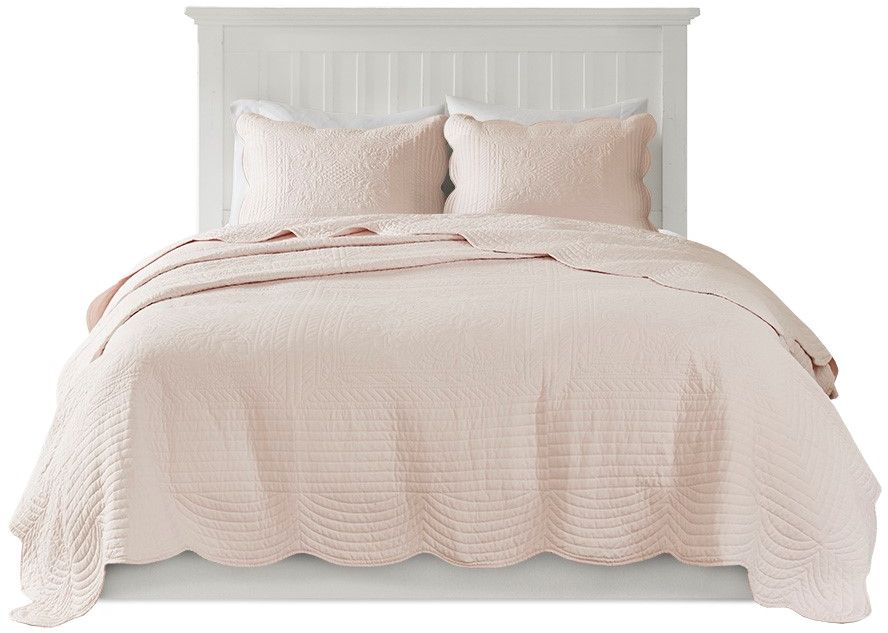 The Madison Park Tuscany 3 Piece Reversible Scalloped Edge Coverlet Set is perfect as a layering piece or as an alternative to your comforter for a charming country look. The coverlet and shams flaunt a classic stitch pattern with scalloped edges that add an elegant touch to your bedroom.Read More