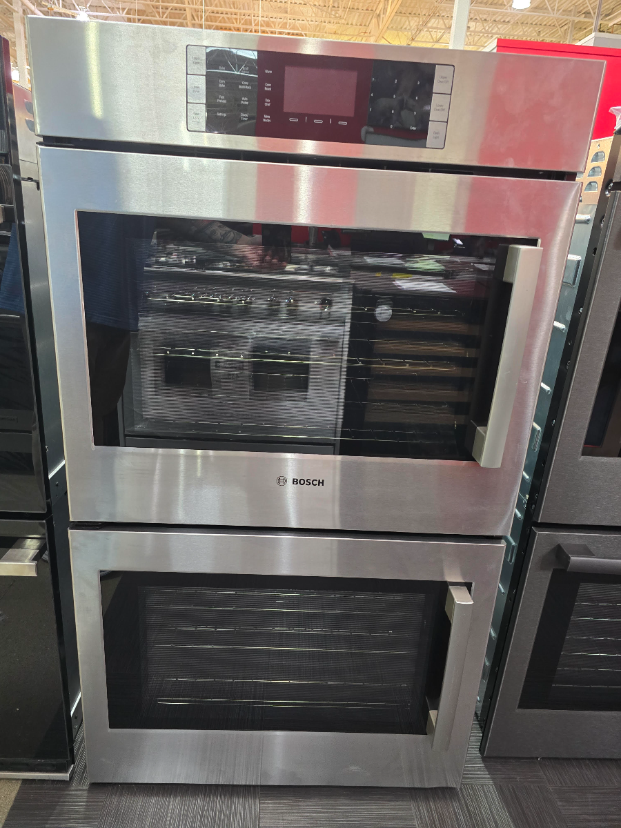 The Bosch Wall Oven Features a SideOpening Door for Easier Cavity Access and a High-Resolution TFT User Interface. Custom cooking programs both cavities: no-preheat frozen food mode, pizza, pie, warm and proof.Read More