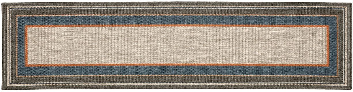 The collection Latitude exhibits sophisticated designs ranging from traditional patterns of tiles and medallions to simple modern borders and geometrics. Multi-colored yarns in neutral grays, accentuated by profound navy tones and vibrant persimmon, add underfoot texture and color pop. Polypropylene machine-woven, Latitude is simple to look after and can be used indoors and outdoors.