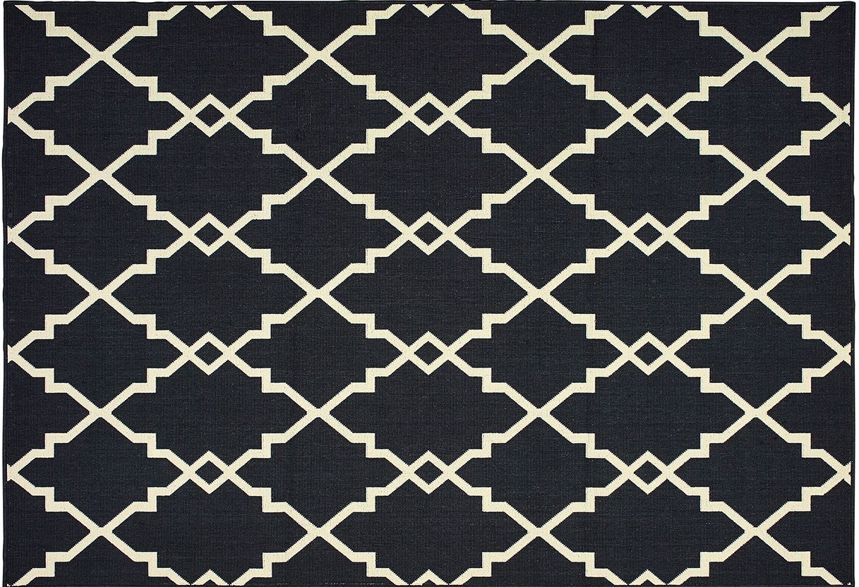 Marina is an elegant new introduction for indoor or outdoor use and features a 100% polypropylene looped yarn made in Egypt. It features a classic neutral palette using high contrast colors like black, ivory, deep navy, sand and cool gray. The collection includes casual but sophisticated patterns like updated geometrics and simplified traditionals that all feel fresh but timeless