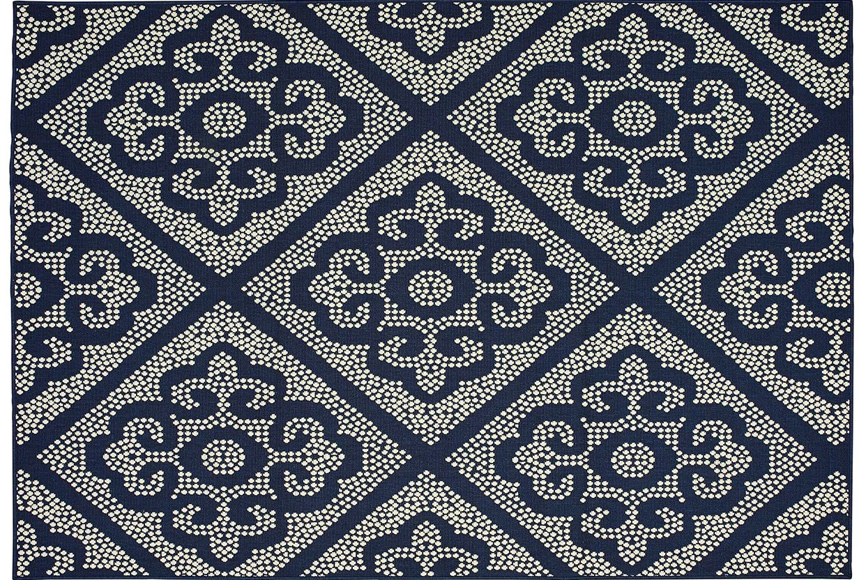 Marina is an elegant new introduction for indoor or outdoor use and features a 100% polypropylene looped yarn made in Egypt. It features a classic neutral palette using high contrast colors like black, ivory, deep navy, sand and cool gray. The collection includes casual but sophisticated patterns like updated geometrics and simplified traditionals that all feel fresh but timeless.