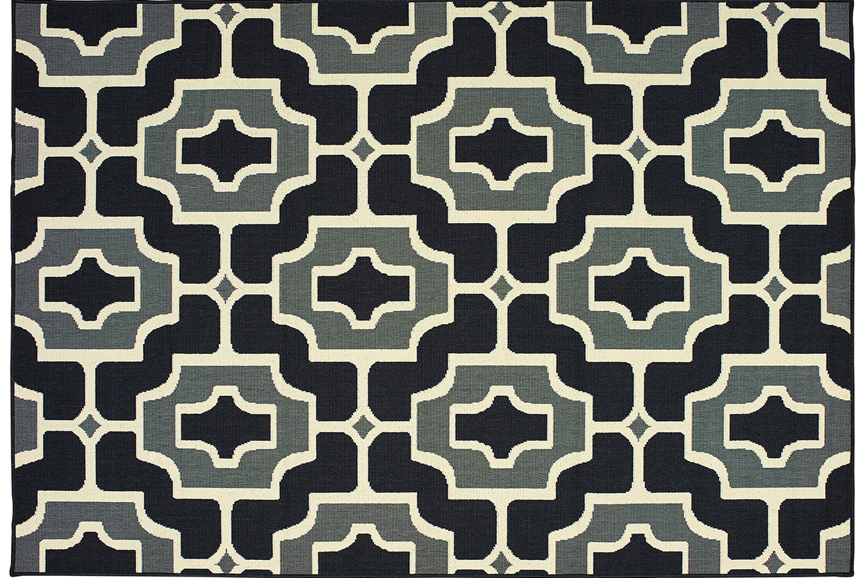 Marina is an elegant new introduction for indoor or outdoor use and features a 100% polypropylene looped yarn made in Egypt. It features a classic neutral palette using high contrast colors like black, ivory, deep navy, sand and cool gray. The collection includes casual but sophisticated patterns like updated geometrics and simplified traditionals that all feel fresh but timeless.