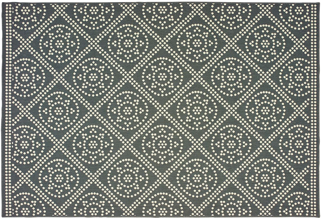 Marina is an elegant new introduction for indoor or outdoor use and features a 100% polypropylene looped yarn made in Egypt. It features a classic neutral palette using high contrast colors like black, ivory, deep navy, sand and cool gray. The collection includes casual but sophisticated patterns like updated geometrics and simplified traditionals that all feel fresh but timeless.