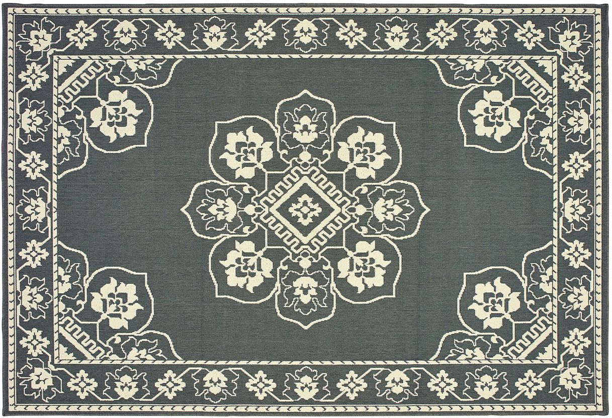Marina is an elegant new introduction for indoor or outdoor use and features a 100% polypropylene looped yarn made in Egypt. It features a classic neutral palette using high contrast colors like black, ivory, deep navy, sand and cool gray. The collection includes casual but sophisticated patterns like updated geometrics and simplified traditionals that all feel fresh but timeless.