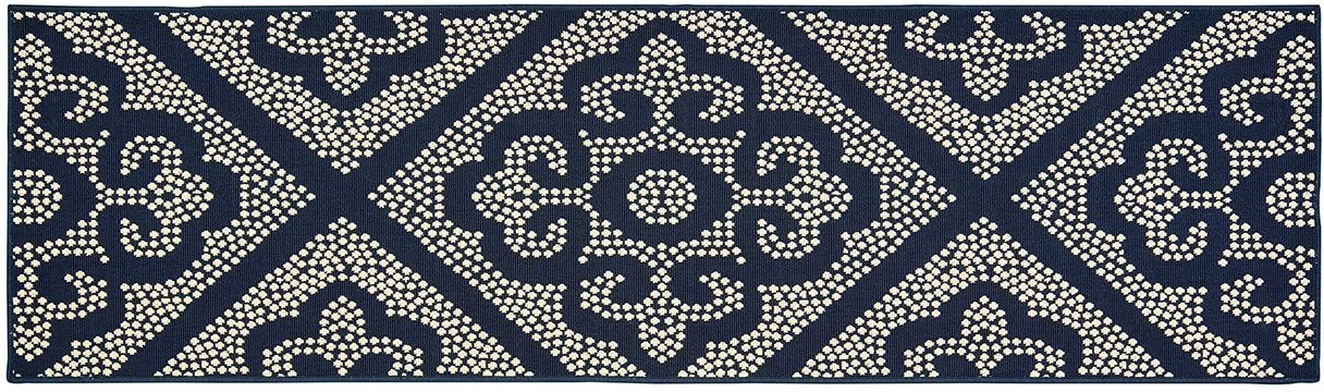 Marina is an elegant new introduction for indoor or outdoor use and features a 100% polypropylene looped yarn made in Egypt. It features a classic neutral palette using high contrast colors like black, ivory, deep navy, sand and cool gray. The collection includes casual but sophisticated patterns like updated geometrics and simplified traditionals that all feel fresh but timeless.