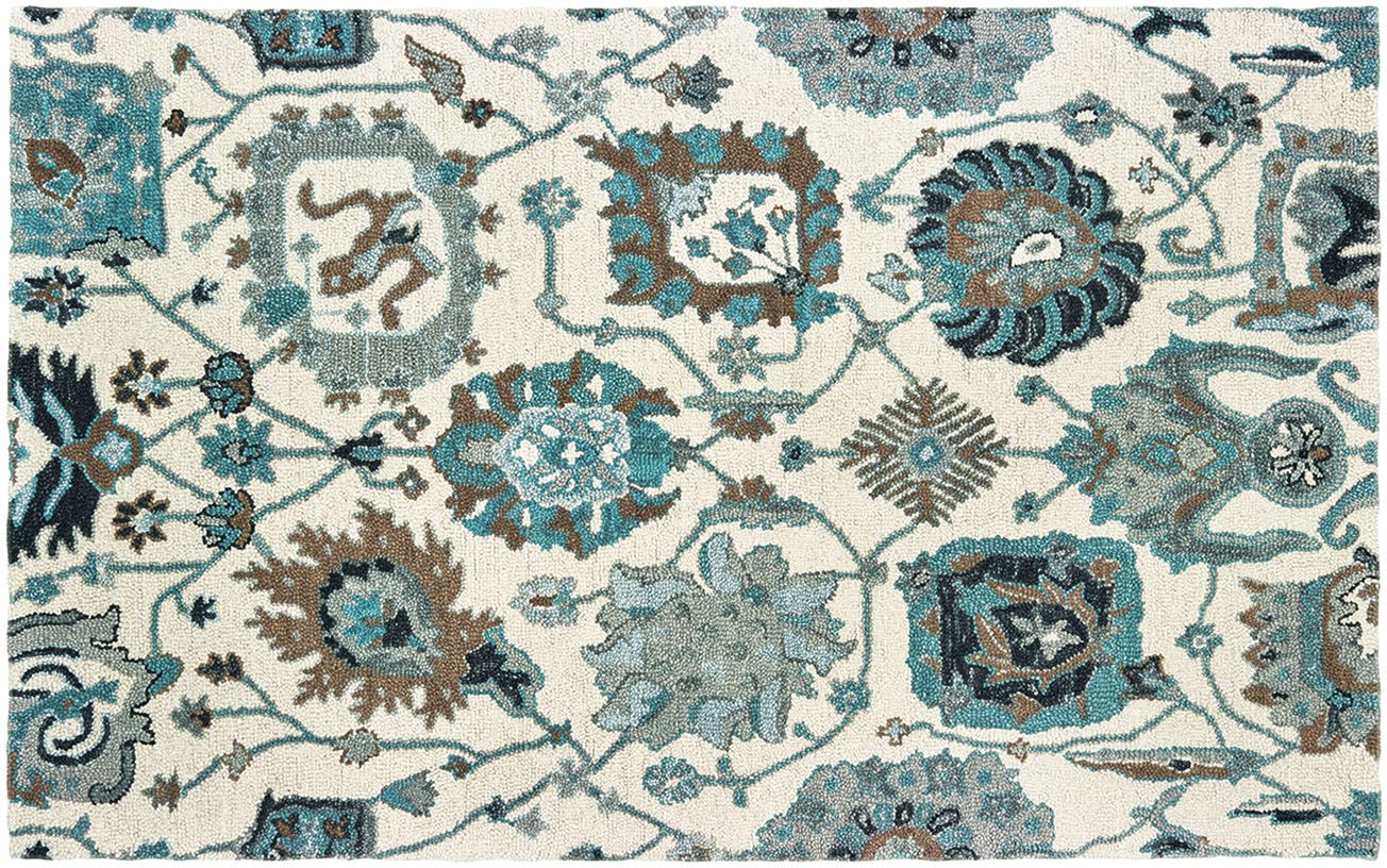 Hand-tufted of 100% wool, the Zahra collection utilizes space-dyed yarn in tonal neutrals with pops of gold, pumpkin, magenta, and turquoise in Boho traditional designs. With its soft and chunky looped construction, Zahra adds a cozy warmth and charm to accentuate your space