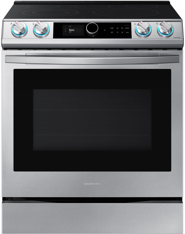 The Samsung Front Control Slide-in Electric Range with Smart Dial and Air Fry is fully Wi-Fi connected and voice enabled, giving you the tools you need to simplify the cooking experience in the kitchen.Read More