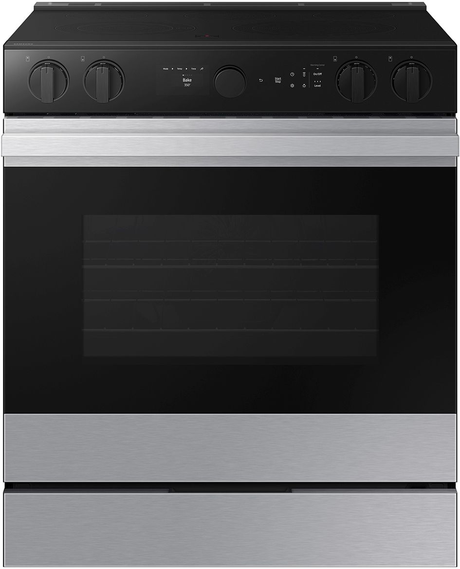 Samsung's smart electric range features an integrated Smart Oven Camera that lets you monitor your food closely and make and share time-lapse videos to your social media to show off your culinary skills. Illuminated Precision Knobs let you know if your cooktop is on from a distance and precisely control your cooktop.Read More