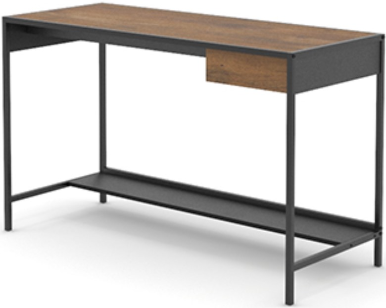 This writing desk with storage features a spacious top surface that provides you with the ideal amount of room for all your desktop essentials like your laptop, a cup full of pens, your collection of notepads and your favorite coffee mug. There’s plenty of room for home décor items like an accent lamp and picture frames too. This writers desk features a small storage drawer that opens and closes on smooth metal runners for easy access of items like paper clips, envelopes, and rubber bands. A lower shelf for additional storage of binders, organizing bins, and more gives you extra space without cluttering your surface area. This wood and metal desk looks great no matter where it stands—it is finished on all sides for versatile placement in your home. Finished in Black with Vintage Oak® accents, this desk for laptop adds a sleek workspace where you need it most.