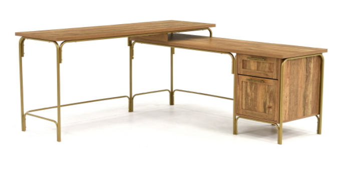 Who says your office space can’t be as stylish as the rest of your home? Certainly not us! Create a beautiful look in your home office when you add the coastal-inspired style and design of this L-shaped desk from the Coral Cape collection. This home office desk offers a spacious top surface that provides you with the room you need for all your office essentials like your laptop, stacks of notepads, folders, and your hot cup of coffee. There’s plenty of room for home décor items like an accent lamp and framed photos too. The file drawer with full extension slides can hold letter-size hanging files so you can keep yourself organized. The storage drawer opens and closes on smooth metal runners for easy access storage of items like stamps and envelopes. This L-shaped computer desk is finished on all sides for versatile placement throughout your home. It’s powder coated metal frame with satin gold finish is sure to make it stand out. Finished in Sindoori Mango, this L-shaped is just what your office space is missing.