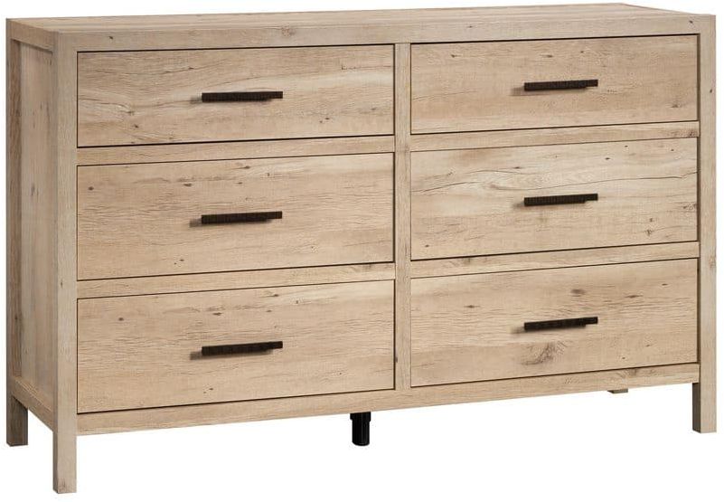 This bedroom dresser features six large drawers that open and close on smooth metal runners for easy-access storage of items like denim jeans, blouses, and cozy sweaters. This dresser with drawers also features a spacious top surface that provides space to store home essentials like decorative plants, cologne bottles, a makeup bag, and framed photos of your family. Need storage in a guest room? This double dresser has a universal aesthetic to fit seamlessly into the second bedroom, hallway, or foyer for added storage where you need it most. Finished in Prime Oak®, this wood dresser will have your bedroom feeling organized in no time!
