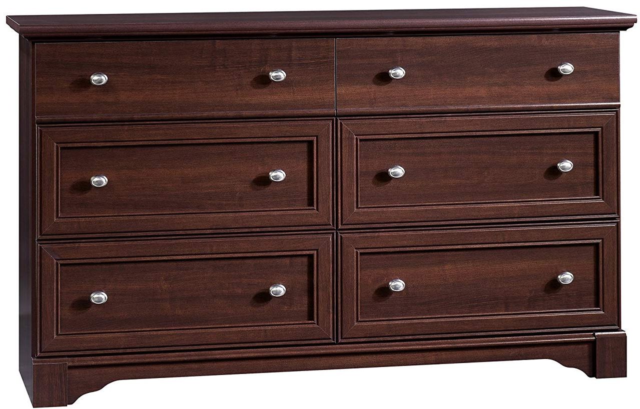 In need of a storage upgrade? Increase your storage space while adding elegant style to your home with this dresser from the Palladia collection. It features six large drawers, with the four lower drawers being extra deep. All six spacious drawers open and close on smooth metal runners and are ideal for stashing away anything from your abundance of blouses and slacks to your hidden collection of t-shirts and pajama pants. It has room for all your stuff! Its top surface also makes a great place to display all your favorite home décor items or other bedroom essentials - an accent lamp, your perfume bottles, a mirror and pictures of the family too. It is detailed with four framed panel drawers and nickel hardware to give it that extra touch of sophisticated beauty that is sure to be a focal point in your bedroom. Finished in Select Cherry, this handsome chest of drawers is the solution to all your storage needs.