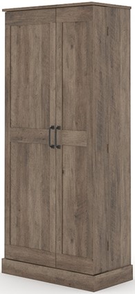 Look no further for a creative storage solution for those storage problems. Organization and style are packaged into one with this two door storage cabinet from the Sauder Select collection. This double door storage cabinet features two large doors with hidden storage behind. Cabinet storage behind each door includes two adjustable shelves and one fixed shelf. These adjustable shelves can move to different heights to create flexible storage for items of all shapes and sizes. Conveniently store and organize all types of items from towels to linens to seasonal décor and more! This storage cabinet features a swing-out storage door with an additional two adjustable and three fixed shelves. Additionally, this unit can be assembled with the swing-out storage door on either the left or right to adapt to the unique layout of your home. This beautiful storage cabinet with doors will look great no matter where it stands -- in the living room, the utility room, or the kitchen. Finished in Rural Pine™, the only question left to ask is: What are you going to put in it?