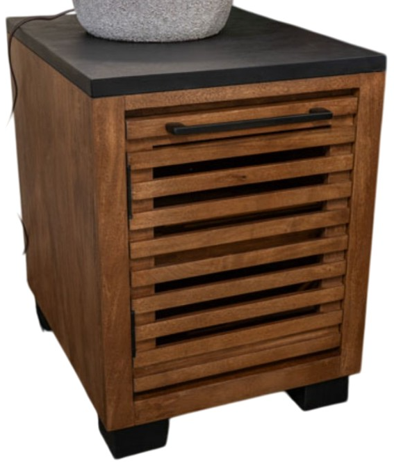 End table features a door cabinet with shelf for extra storage