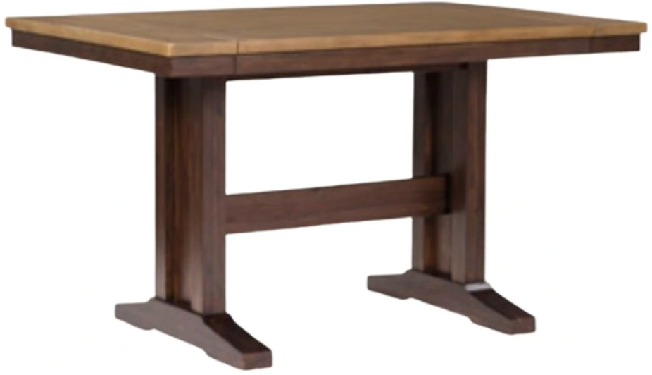 This counter table features a two-tone dark brown and light brown finish that adds warmth to any dining area. Built with a sturdy frame and a comfortably wooden top, it offers reliable support and dining for four, perfect for casual meals or extra guests.Read More