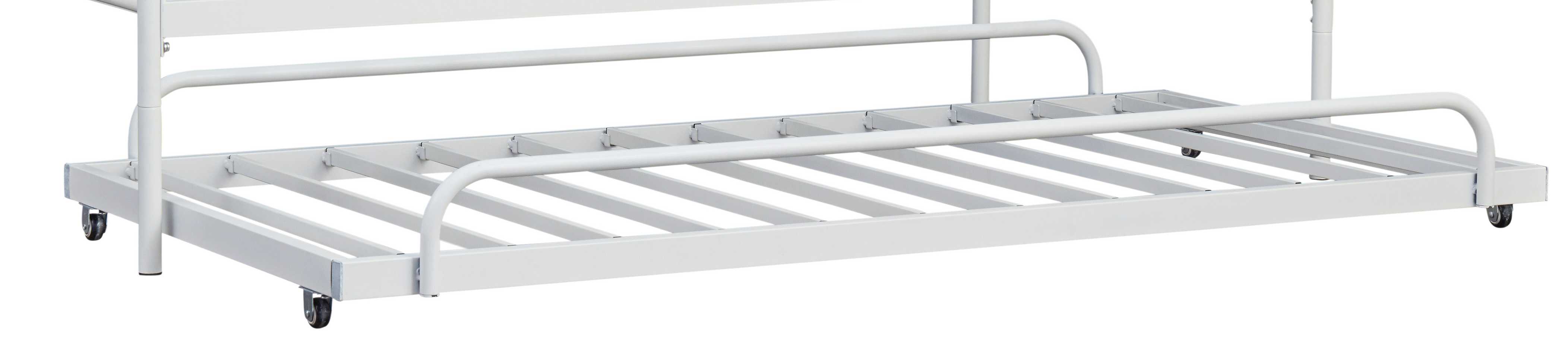 Timeless classic steel bed frames that are versatile. Nicely mixes with a variety of style. Multi functional piece. Twin metal day bed frame. Sturdy frame construction and does not require additional bed foundation. Optional trundle bed with casters. B076-1xx is black; B076-2xx is white. Assembly required for this product.Read More