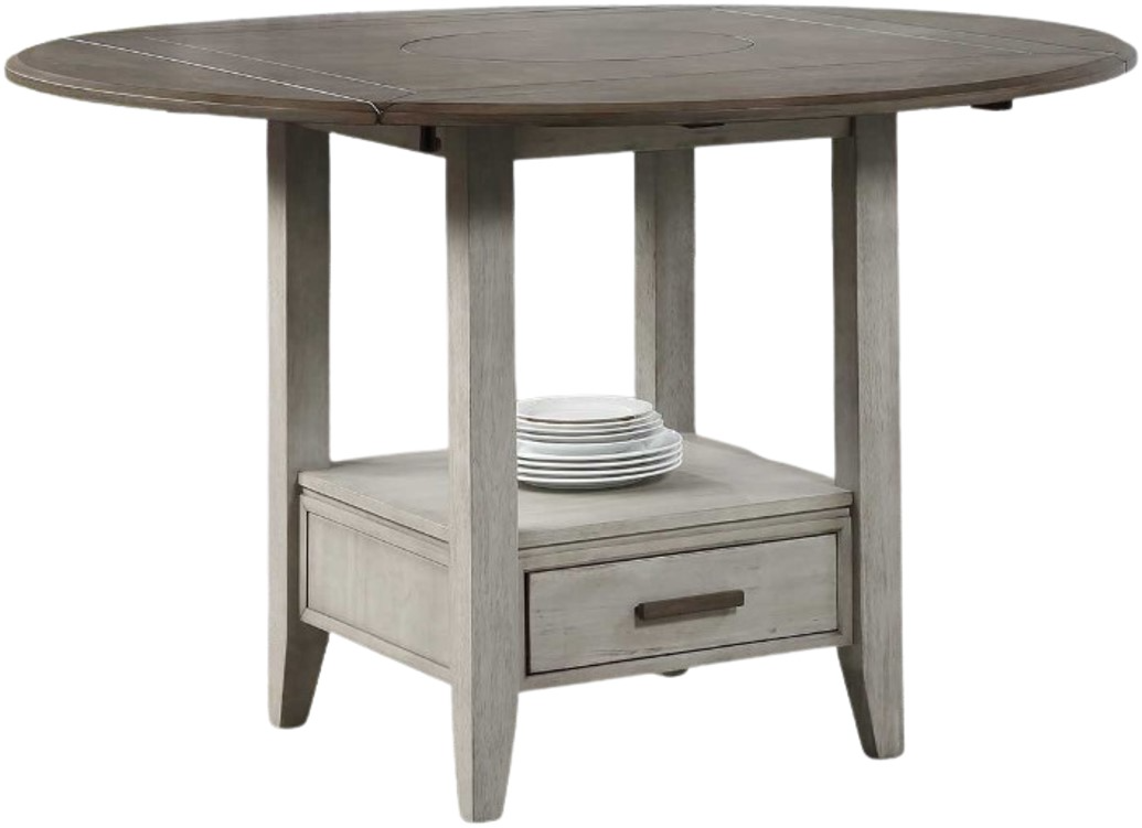 Casually styled and easy to live with, the abacus dropleaf counter dining table features a great style with extra-special function. A smoky alabaster and putty two-tone finish presents a fashion-forward footprint that is enhanced by the double drop-leaf table that converts from a 42-inch square to a 59-inch round table.Read More