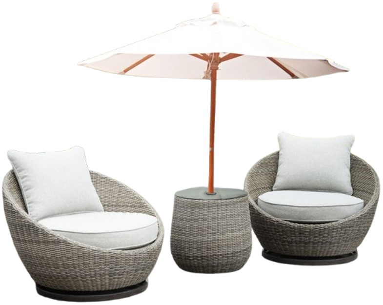 A cozy setting for two, the Adeline 3-piece outdoor set ships complete with two swivel woven chairs and a side table. The egg-shaped chairs swivel 360° for a relaxing casual setting on a warm summer night.Read More