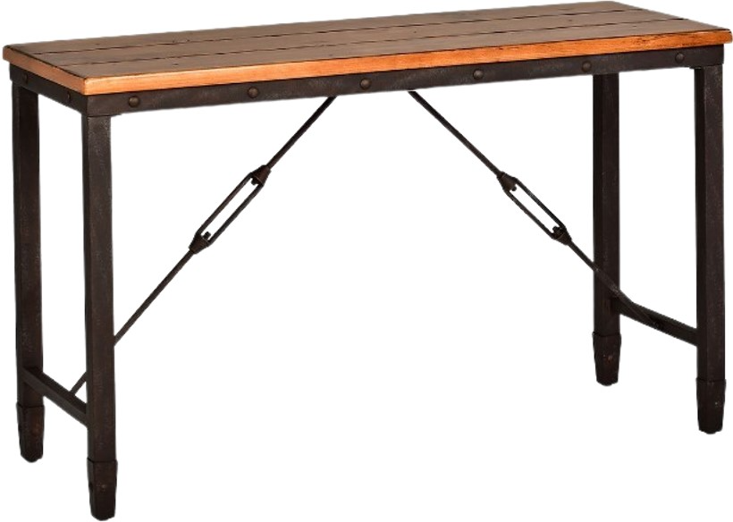 Get industrial with the rustic Ashford Occasional Collection from Steve Silver Company. Tables feature a vintage solid pine plank top finished in antique honey stain that blends effortlessly with the iron metal base. The metal top rail features a rivet look that works beautifully with the turnbuckle stretcher.Read More