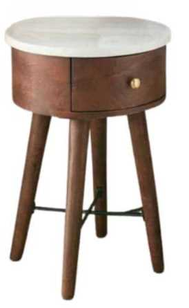 A side table for your favorite chair that not only looks great but also adds valuable storage for keys, remotes, or other items. The Bangalore accent table features a durable white marble top finish with solid mango base in a brown cherry finish that will complement virtually any decor with its transitional styling.Read More