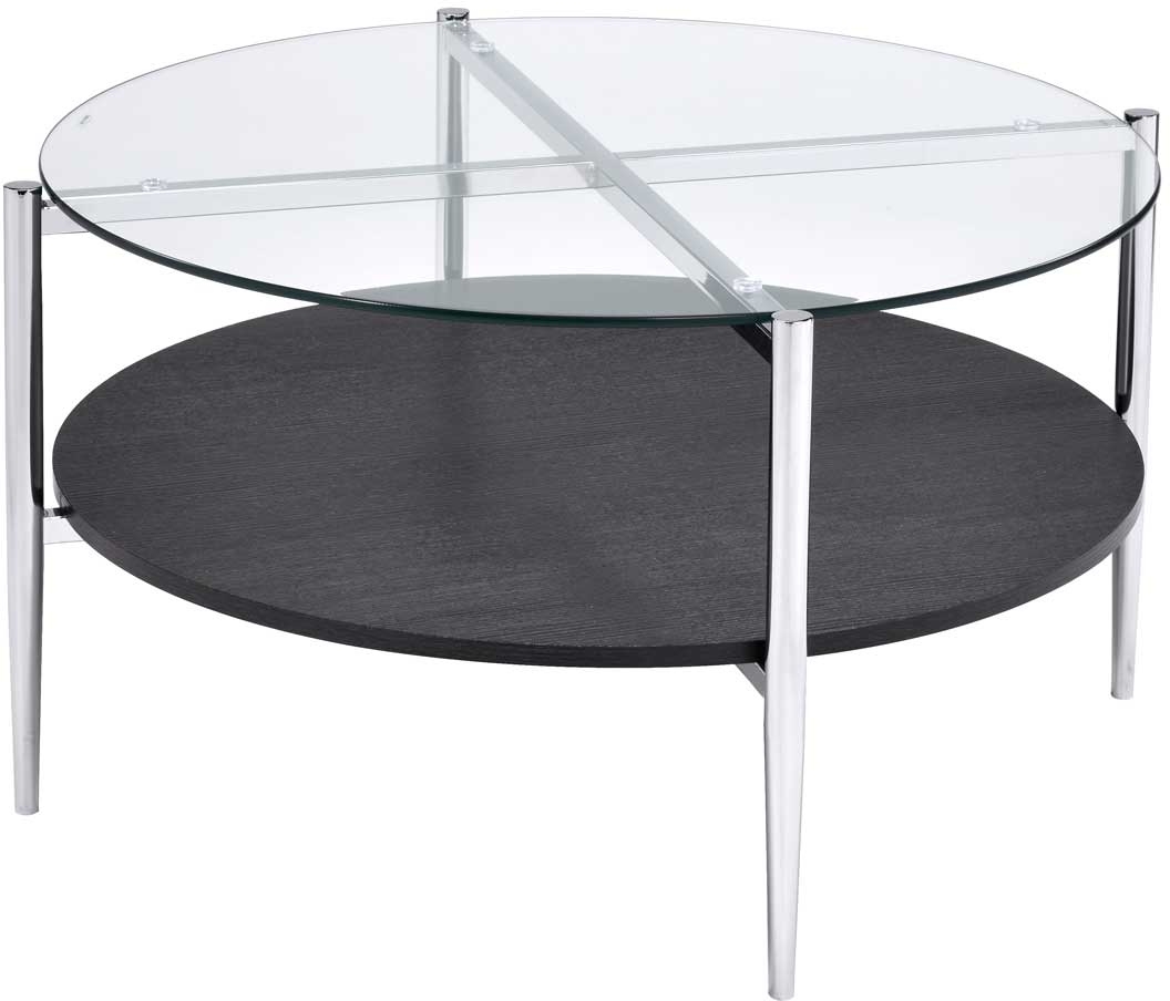 Add some sparkle to your life with the Bayliss occasional set. Mixed media elements abound in this table collection with tempered glass tops, chrome support legs and deep merlot finished bottom shelf combining in a modern elegant style that will become the centerpiece of your room. The cocktail table will be the centerpiece of your living room with its shining base and glass top adding to the beauty of the room.