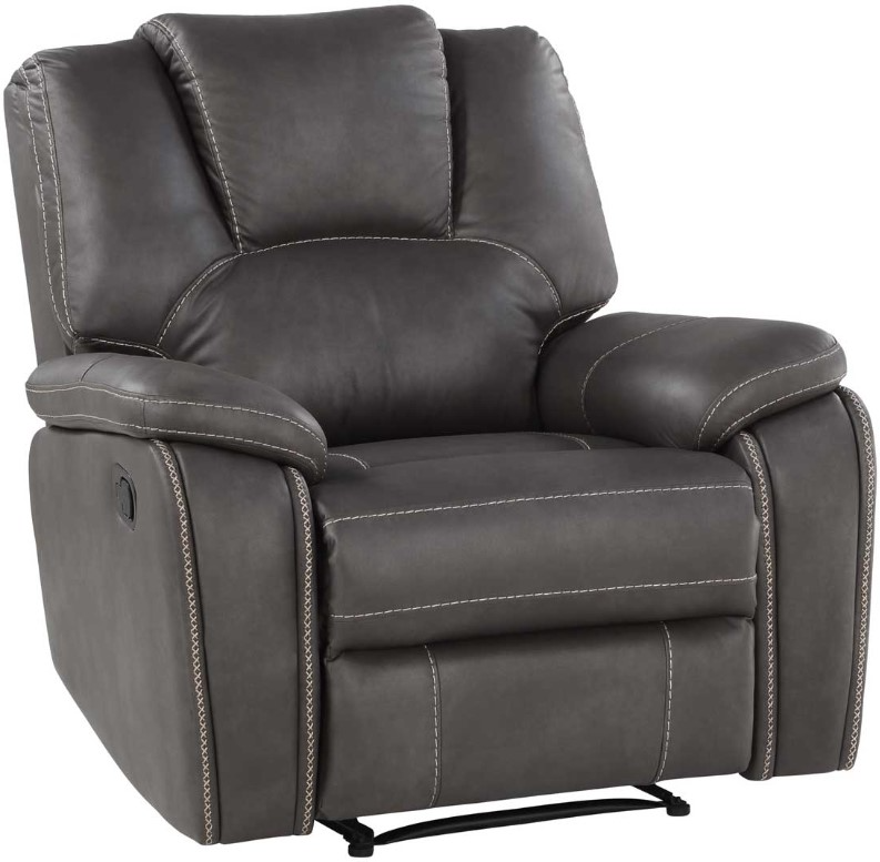 The Katrine Reclining Chair showcases the best in manual motion upholstery with this recliner that is sure to become your favorite seat in the house. The Recliner is covered in a luxurious Charcoal faux-leather that features baseball stitching, padded armrests and a raised, padded headrest for a stylish and comfortable view and seat.Read More