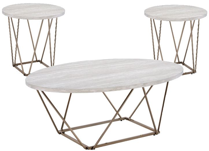 Get an immediate upgrade to your living room with the Rowyn 3-pack table set that is a living room in a box with a cocktail table and two end Tables included. This contemporary styled collection features a faux white marble top that delivers the look of real marble at a true value price.Read More